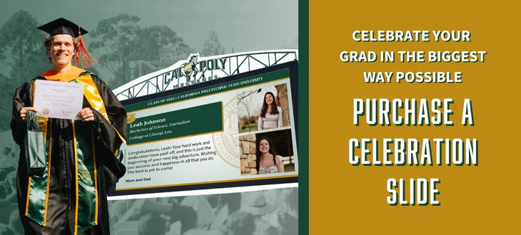 Celebrate your Mustang in a big way with a Graduate Celebration Slide! Send a special message they’ll see on the jumbotron as they enter Spanos Stadium.